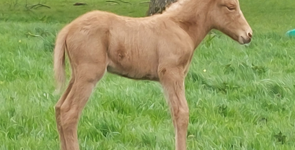 une jolie Mule Palomino , sans marques visibles pour le moment avec son poils de bébé , il faudra être patient pour découvrir sa belle robe définitive .